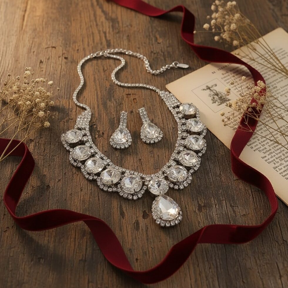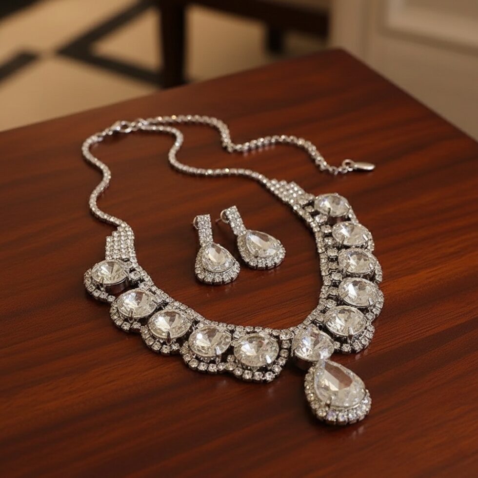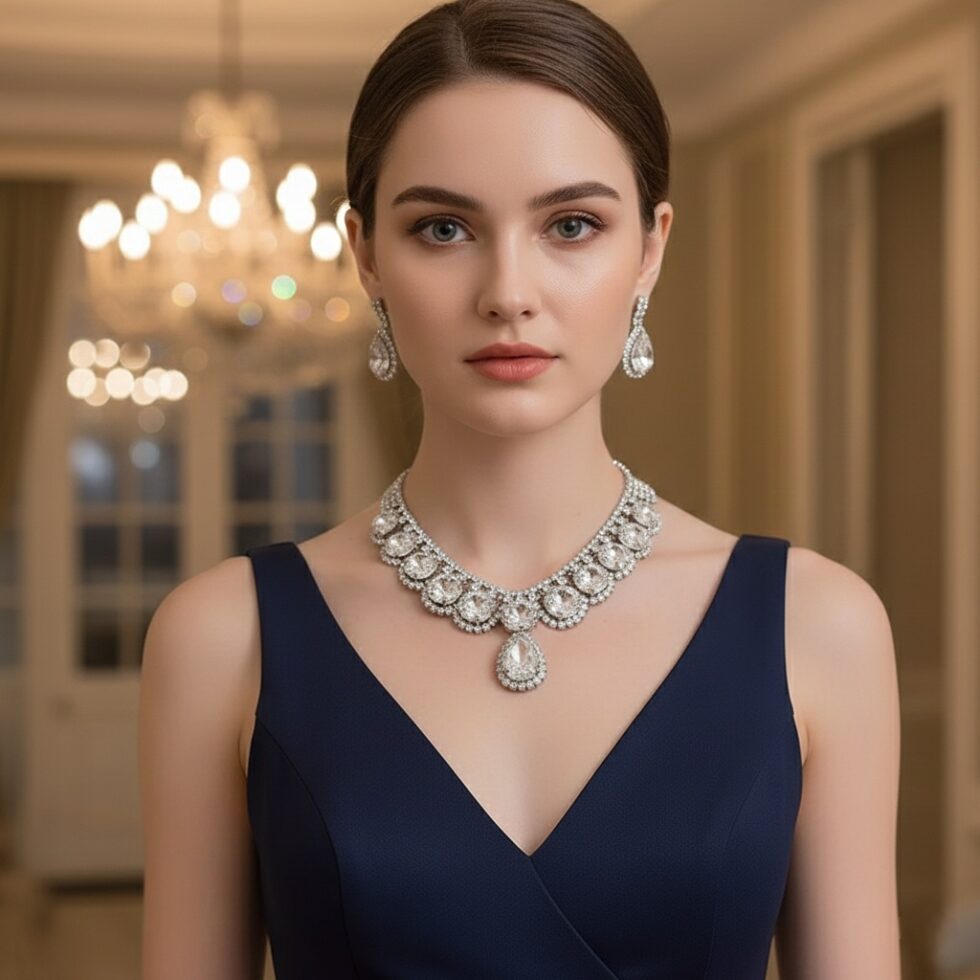 Crafted to captivate, the Imperial Glow Crystal Set showcases dazzling oversized crystals layered with shimmering accents for a royal finish. The elegant teardrop drop pendant paired with matching earrings creates a harmonious and luxurious look, ideal for special moments that deserve extra sparkle.