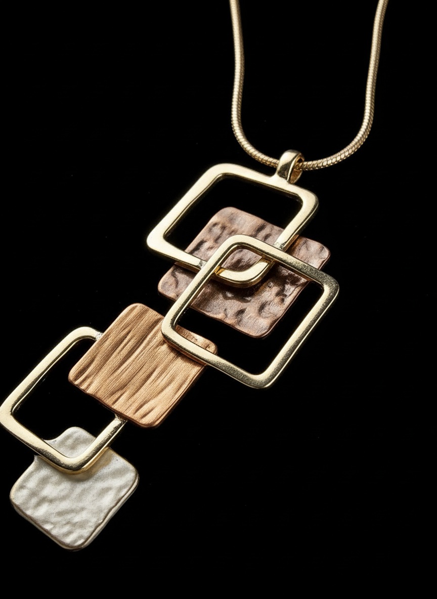 Mixed Media Abstract Square Pendant Necklace
