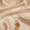 A contemporary and distinctive pendant necklace featuring a beautiful gold-toned chain and a unique layered drop. The pendant is composed of three interconnected squares: two are open, polished gold frames, and the central square contains an abstract insert with rich, textured tones of brown, burgundy, and ivory. This geometric piece offers a chic, artistic touch that pairs effortlessly with solid-colour tops and modern business attire.