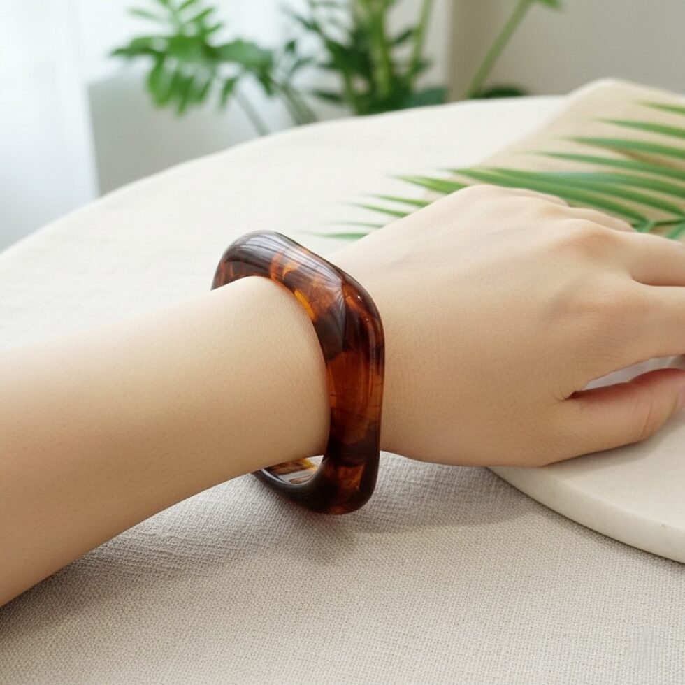 Make a bold yet sophisticated statement with The Cognac Marbled Resin Ring. This chunky, sculpted band features a rich, deep amber and brown tortoiseshell pattern that offers a luxurious, vintage-meets-modern appeal. Crafted from high-quality polished resin, its unique geometric design—a rounded square shape—ensures a comfortable fit while providing maximum visual impact. This ring is a perfect, lightweight alternative to traditional stone jewelry, ideal for elevating everyday looks or completing a chic evening ensemble.